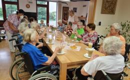 Dnešní dopoledne si klienti našeho Domova zpříjemnili posezením v "Růžové kavárničce". Protože v těchto parných letních dnech zrovna nevyšlo počasí, tak se kavárnička neuskutečnila venku pod pergolou, ale v jídelně. To vůbec nikomu nevadilo. Ba naopak. Při reprodukované hudbě hosté kavárničky byli obslouženi našimi pracovnicemi ze sociálního úseku.